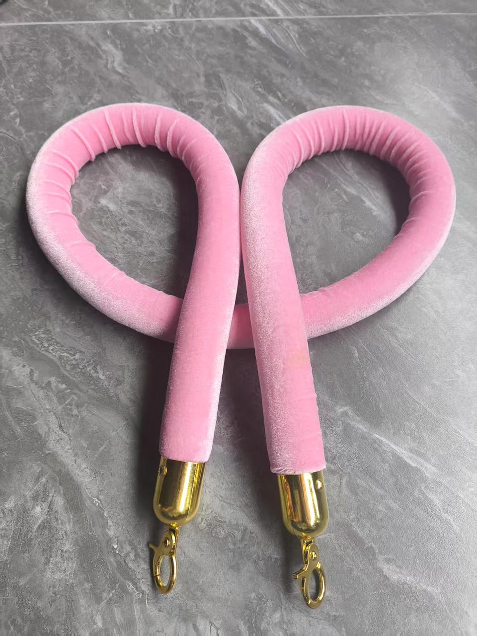 Предлагаем к продаже декоративный бархатный канат розового цвета длиной 1,5 метра для столбиков и стоек ограждения ваших мероприятий.