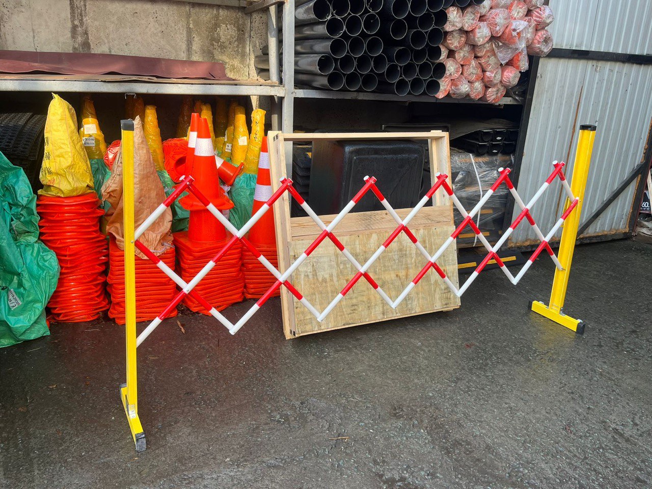 дорожное временное ограждение раздвижное передвижное мобильное "гармошка баян гитара" жёлтый забор на колесах парковочный фан барьер столбик Южно-Сахалинске